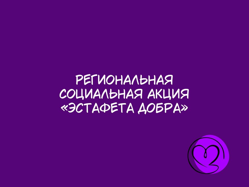 Региональная социальная акция «Эстафета добра» проводится с целью вовлечения детей в добровольческую деятельность по оказанию поддержки сверстникам, находящимся в трудной жизненной ситуации, реализации детских добровольческих инициатив и популяризации добровольческой деятельности на территории Кировской области.